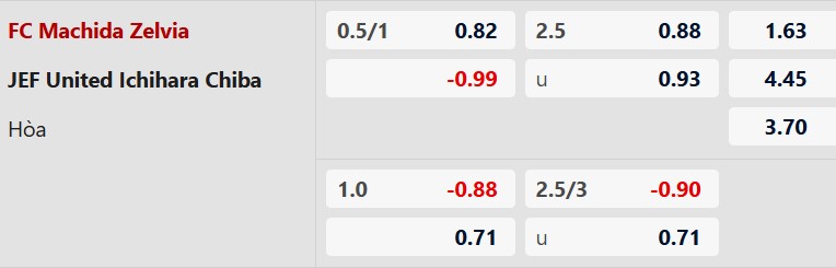 Thông tin tỷ lệ Machida Zelvia vs JEF United: