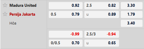 Niềm tin đang hướng về cửa Persija. Điểm ăn ở cửa Persija -1/2 đã giảm từ 0.93 xuống 0.79. Đây là điều bất ngờ khi họ không thi đấu nổi bật hơn Madura United trong thời gian qua. Tuy nhiên, việc Madura United không tốt trên sân nhà khi không thắng 5 trận gần đây (thua kèo 4/5 trận) là yếu tố để ủng hộ Persija. Trong khi đó, đội khách thắng 3/5 trận làm khách gần đây.