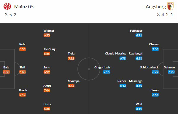 Chất lượng hàng công đôi bên đều ở mức trung bình: Mainz 23 bàn/20 trận còn Augsburg nhiều hơn 1 bàn. Ngoài ra Mainz hoặc sạch lưới hoặc nhận đúng 1 bàn thua ở 6 trận sân nhà gần đây. Bên cạnh đó, Augsburg thường xuyên nổ súng dưới 2 lần khi làm khách của Mainz và riêng 4/6 màn đối đầu vừa qua giữa hai đội tại MEWA Arena có tối đa 2 pha lập công.