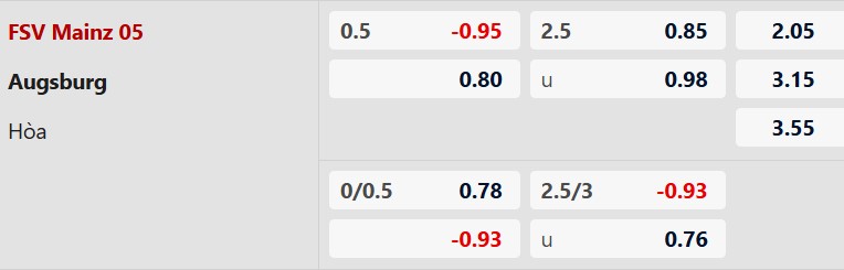 Thông tin tỷ lệ cược Mainz vs Augsburg: