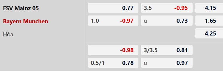 Thông tin tỷ lệ kèo bóng đá Mainz vs Bayern Munich: