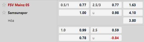 Thông tin tỷ lệ kèo Mainz vs Samsunspor:
