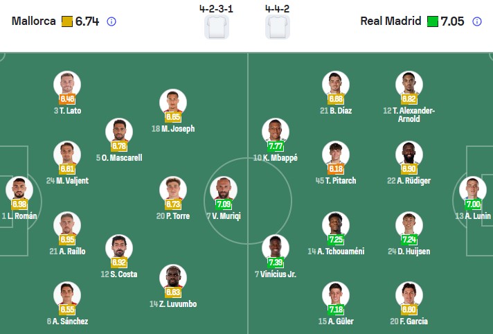 Đội hình dự kiến Mallorca vs Real Madrid: