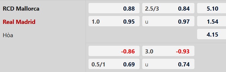 Thông tin tỷ lệ kèo bóng đá Mallorca vs Real Madrid: