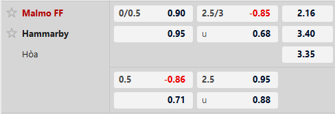 Thông tin tỷ lệ bóng đá Malmo vs Hammarby: