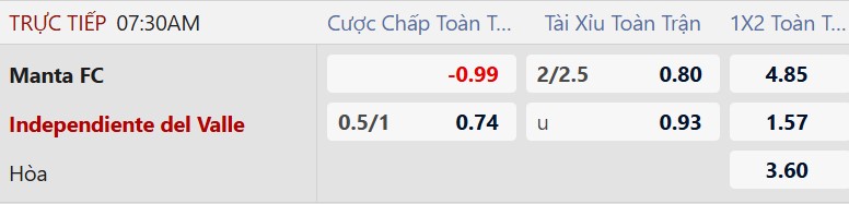 Thông tin tỷ lệ Manta vs Independiente del Valle: