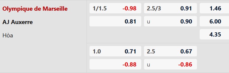 Thông tin tỷ lệ kèo bóng đá Marseille vs Auxerre: