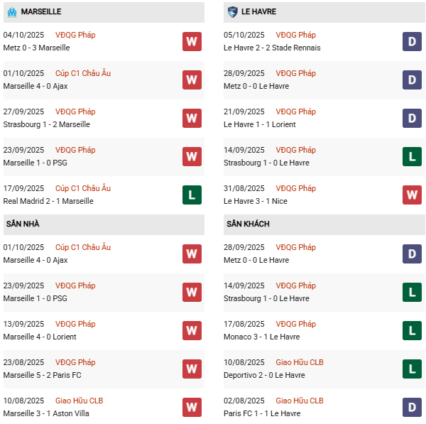 5 trận gần nhất, hàng công của Marseille đều ghi bàn, trong đó có 3 trận ghi từ 3 bàn trở lên. Hàng công của Marseille cũng luôn ghi được nhiều bàn mỗi khi Le Havre.Trong 5 lần gần nhất gặp Le Havre, Marseille đều ghi bàn trong đó có 4 trận ghi 3 bàn trở lên.