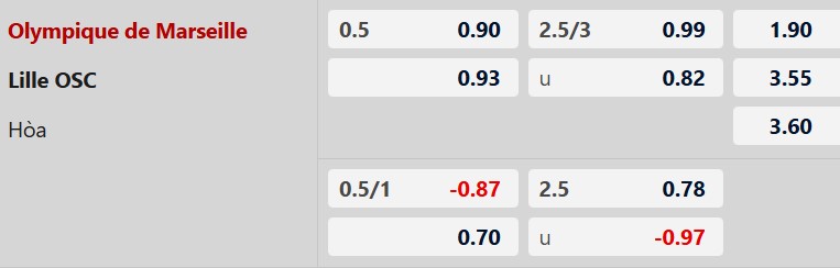 Thông tin tỷ lệ kèo bóng đá Marseille vs Lille: