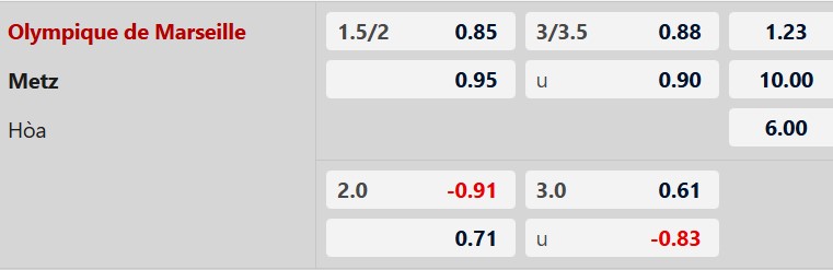 Nhận định kèo châu Á Marseille vs Metz: