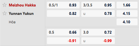 Thông tin tỷ lệ Meizhou Hakka vs Yunnan: