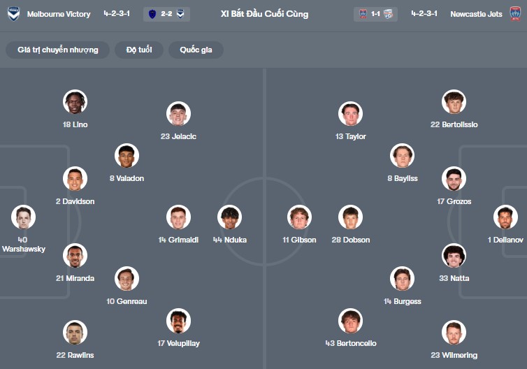 Đội hình dự kiến Melbourne vs Newcastle Jets: