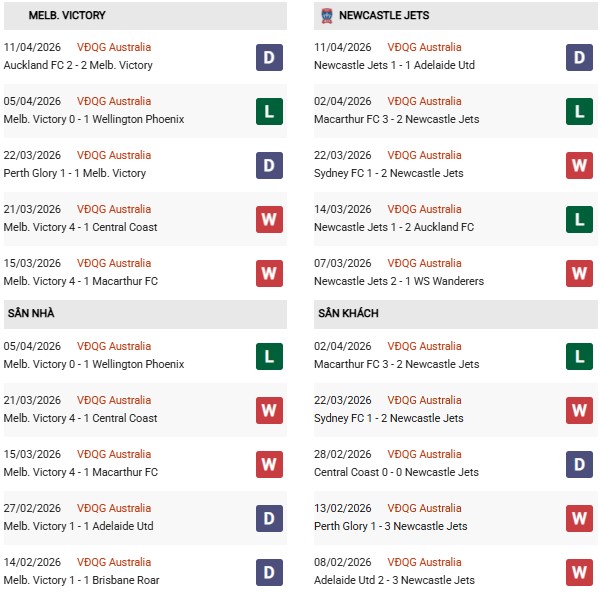 Thống kê phong độ Melbourne vs Newcastle Jets: