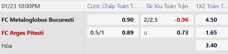 Với sự chênh lệch rõ rệt về thứ hạng và phong độ, Arges Pitesti được xếp ở cửa trên với mức chấp 3/4 bàn. Trong bối cảnh Metaloglobus đã sa sút nghiêm trọng và thường xuyên để lộ nhiều khoảng trống nơi hàng phòng ngự, đội khách hoàn toàn có cơ sở để hướng tới một chiến thắng trọn vẹn, thậm chí là vượt kèo châu Á nếu tận dụng tốt cơ hội.