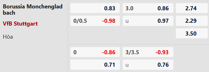 Soi kèo châu Á M'Gladbach vs Stuttgart: