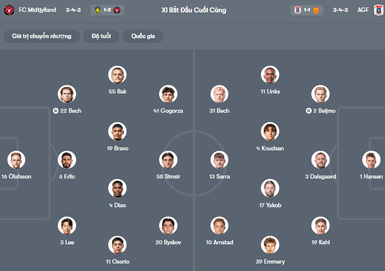 Đội hình dự kiến Midtjylland vs Aarhus: