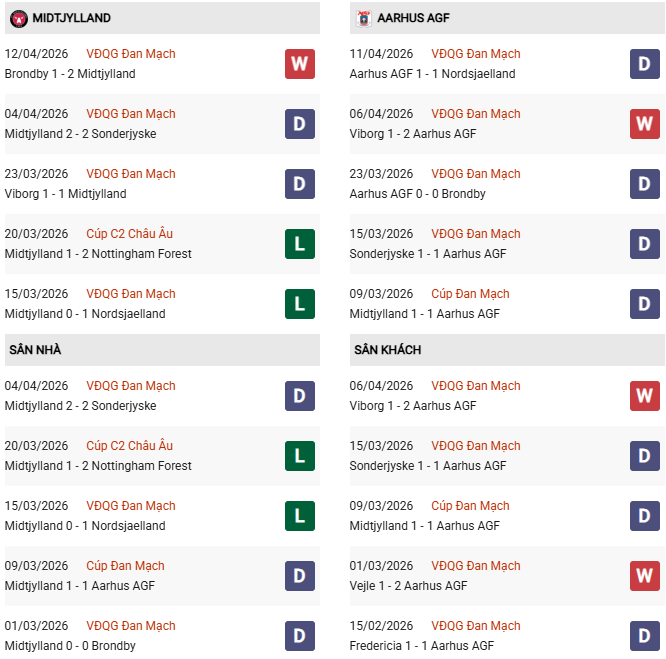 Thống kê phong độ Midtjylland vs Aarhus: