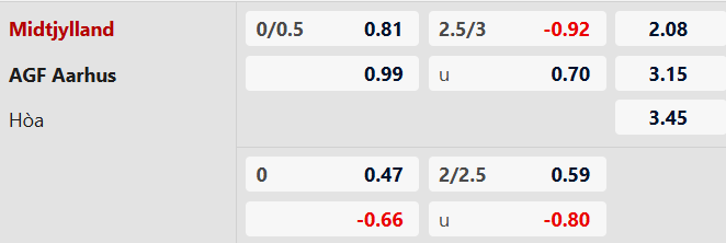 Thông tin tỷ lệ kèo Midtjylland vs Aarhus: