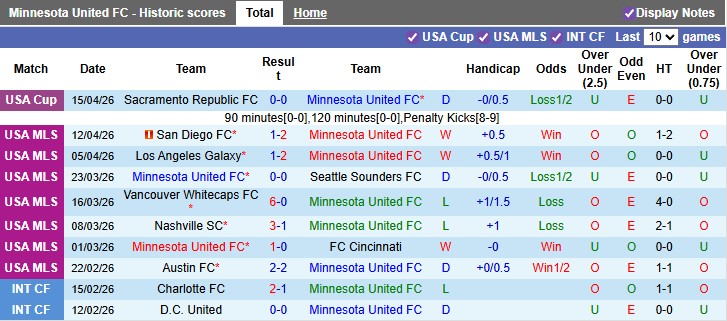 Giữa tuần vừa rồi, Minnesota phải nhờ vào khả năng "đấu súng" trên chấm 11m mới có thể đánh bại một đội dưới hạng tại vòng 1/16 Cúp quốc gia Mỹ. Dẫu sao, Minnesota vẫn nối dài được mạch bất bại lên con số 4. Trước đó, thầy trò nhà Cameron Knowles đã có được 2 chiến thắng và 1 trận hòa tại MLS.