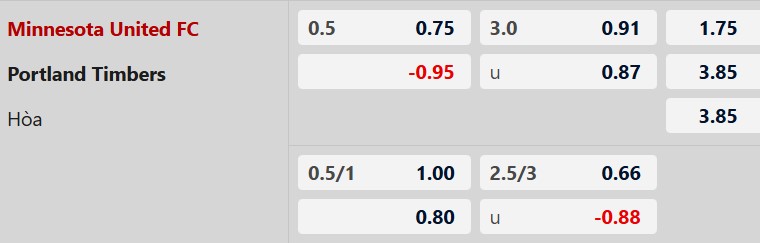 Soi kèo châu Á Minnesota vs Portland Timbers: