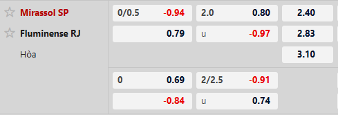Thông tin tỷ lệ kèo Mirassol vs Fluminense: