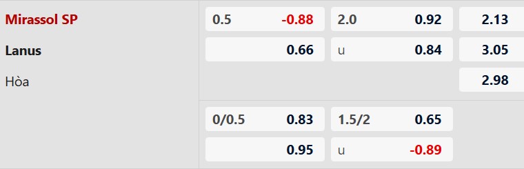 Mốc tài xỉu 2 hòa cho thấy giới chuyên môn đánh giá đây là trận đấu chặt chẽ. Mirassol đang gặp vấn đề lớn ở khâu ghi bàn khi chỉ có 2 pha lập công trong 5 trận gần nhất, còn Lanus thường chơi khá an toàn trên sân khách. Kịch bản ít bàn thắng là rất sáng.