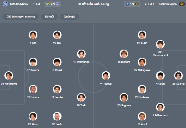 Đội hình dự kiến Mito Hollyhock vs Kashiwa: