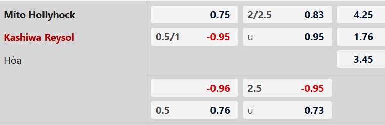 Thông tin tỷ lệ kèo Mito Hollyhock vs Kashiwa: