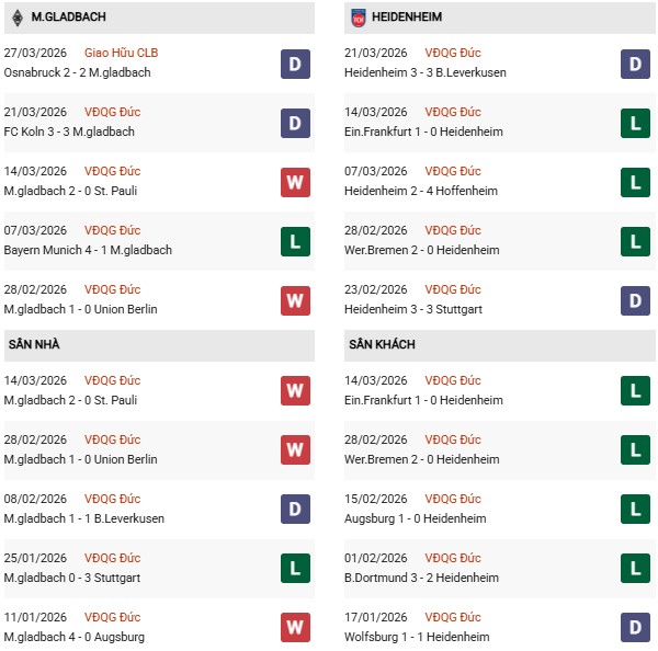 Kể từ lần đầu được tham dự Bundesliga (mùa 2023/24) cho đến nay, Heidenheim chẳng những chưa thể một lần đánh bại Monchengladbach mà còn thua gần như toàn bộ (4/5). Xem ra, Heidenheim mà thua nhẹ (1 bàn) trận này đã là thành công chứ giành điểm e rằng không thể.