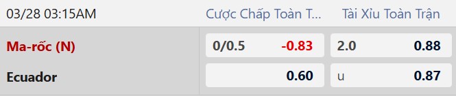 Thông tin tỷ lệ cược Morocco vs Ecuador: