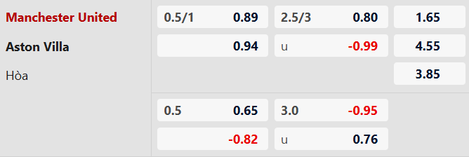 Thông tin tỷ lệ kèo bóng đá MU vs Aston Villa: