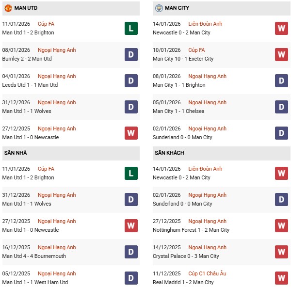 Tổng bàn thắng là số chẵn: 3/4 trận gần nhất của MU có tổng bàn thắng là số chẵn. 4/5 trận gần nhất của Man City có kịch bản tương tự. Số lần lưới rung trận này sẽ chia hết cho 2.