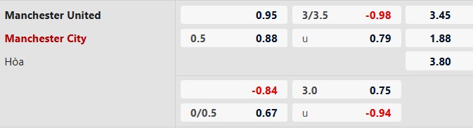 Thông tin tỷ lệ kèo bóng đá MU vs Man City: