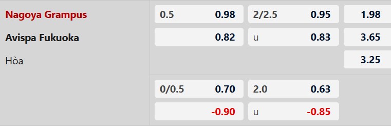 Thông tin tỷ lệ Nagoya vs Avispa Fukuoka: