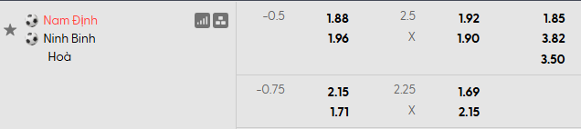 Thông tin tỷ lệ kèo Nam Định vs Ninh Bình: