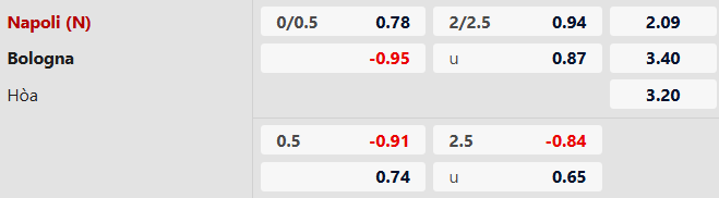 Ít bàn thắng: 6/7 trận gần đây của Napoli cùng 3/4 trận vừa qua của Bologna đều có tối đa 2 bàn thắng được ghi. 4/5 trận đối đầu gần nhất cũng có không quá 2 lần lưới rung.