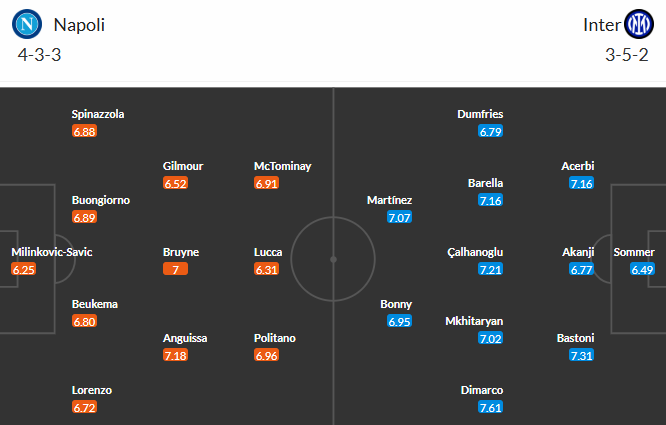 Inter Milan được đánh giá cao hơn với mức kèo 1/4 bàn. Nhìn lại 5 lần chạm trán gần nhất, Napoli và Inter Milan luôn mang đến những trận cầu nghẹt thở. Trong chuỗi đó, Inter nhỉnh hơn với 2 chiến thắng, còn Napoli vẫn chưa thể một lần hưởng niềm vui trọn vẹn. Lần đụng độ gần nhất giữa họ tại Serie A vào tháng 3/2025 kết thúc 1-1. Dù vậy, với phong độ ổn định hơn và tinh thần đang lên cao, Inter Milan được đánh giá có nhiều khả năng rời sân Maradona với trọn vẹn 3 điểm.