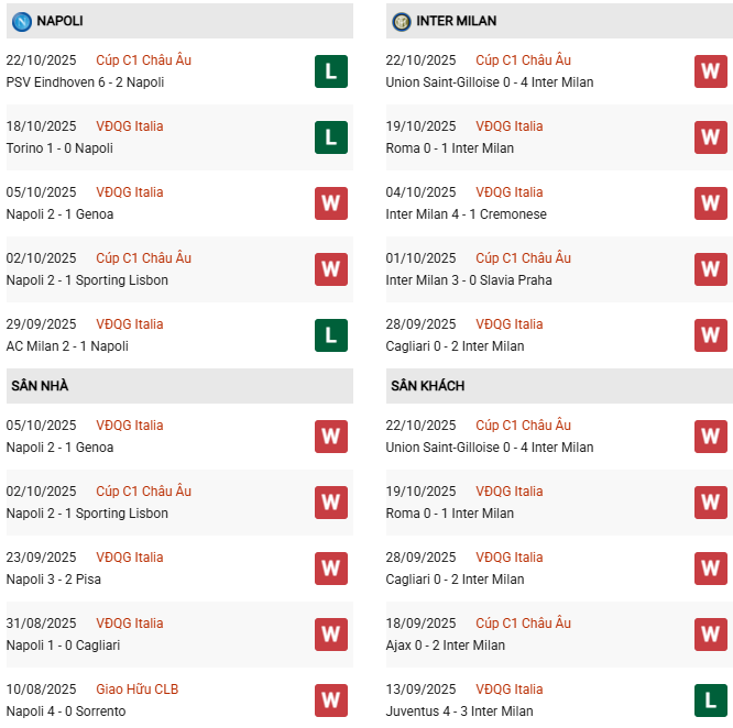 Trái ngược với Napoli, Inter Milan đang vào guồng. Đoàn quân của Cristian Chivu hành quân đến miền Nam nước Ý với hành trang là chuỗi 7 chiến thắng liên tiếp trên mọi đấu trường. Kể từ sau thất bại trước Juventus hồi tháng 9, Nerazzurri đã thể hiện phong độ gần như hoàn hảo ở Serie A, và tiếp tục chứng minh sức mạnh khi dễ dàng hạ gục Union SG 4-0 tại Champions League.