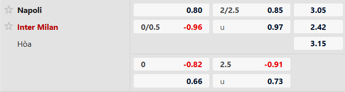 Thông tin tỷ lệ kèo bóng đá Napoli vs Inter Milan: