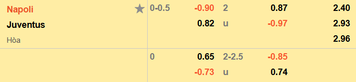 Thông tin tỷ lệ kèo bóng đá Napoli vs Juventus: