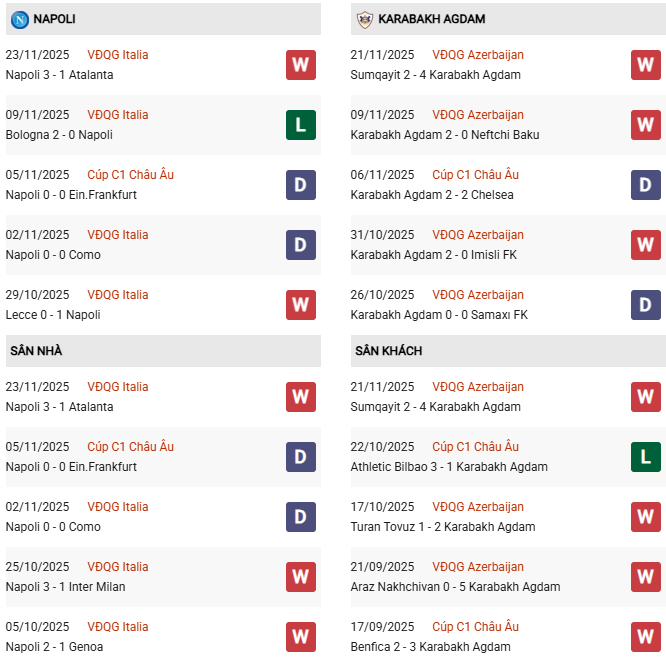 Thống kê phong độ Napoli vs Qarabag: