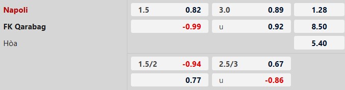 Soi kèo tài xỉu Napoli vs Qarabag: