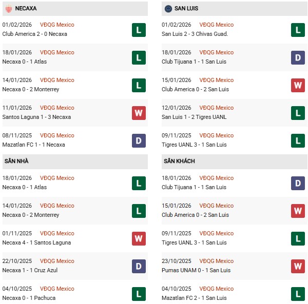 - Necaxa thắng 6, hòa 2, thua 2 trong 10 trận gặp San Luis gần đây.