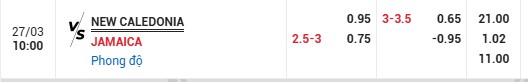 Thông tin tỷ lệ kèo New Caledonia vs Jamaica: