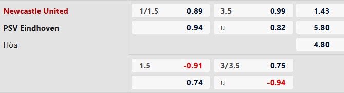 Newcastle thua hiệp 1 theo châu Á: Newcastle thua hiệp 1 theo châu Á ở 4/5 trận gần nhất. Đá với PSV thắng hiệp 1 theo châu Á ở 5/7 trận vừa qua, Chích chòe không phải là sự lựa chọn đáng tin trước giờ nghỉ.