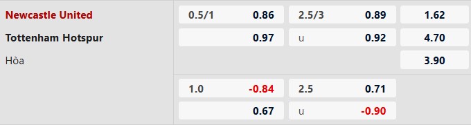 Thông tin tỷ lệ kèo bóng đá Newcastle vs Tottenham: