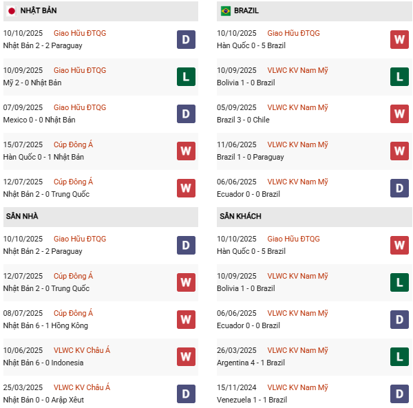 Trong khi đó, Brazil đã đánh bại một siêu cường Viễn Đông khác là Hàn Quốc tới 5-0 cách đây ít ngày, mặc dù đó mới chỉ là lần thứ 2 trong 6 trận gần nhất Selecao ghi được nhiều hơn 1 bàn.