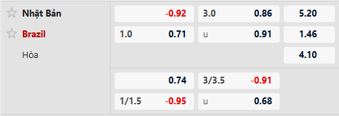 Thông tin tỷ lệ kèo bóng đá Nhật Bản vs Brazil: