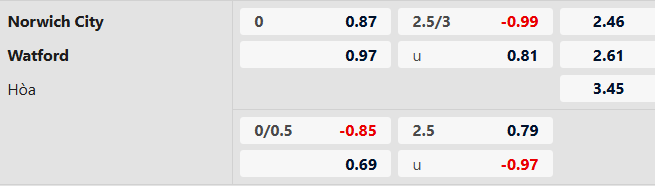 Thông tin tỷ lệ cược Norwich City vs Watford: