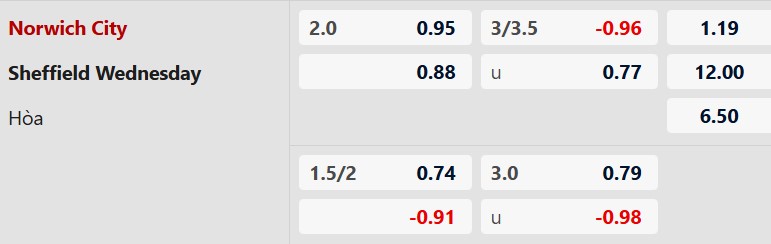 Thông tin tỷ lệ Norwich vs Sheffield Wed: